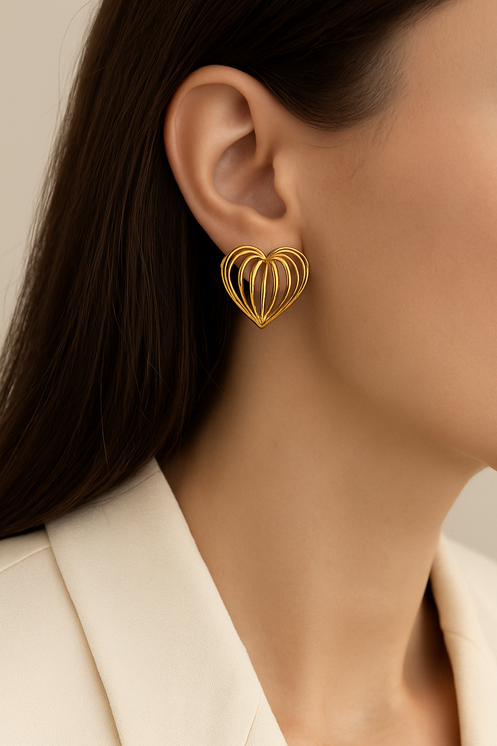 Stainless Steel 18K Goldplated Oorbellen Dames - Hartvormige