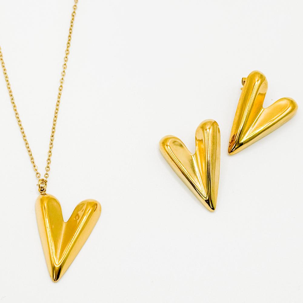 Stainless Steel Ketting - Oorbellen Set Dames - Hart