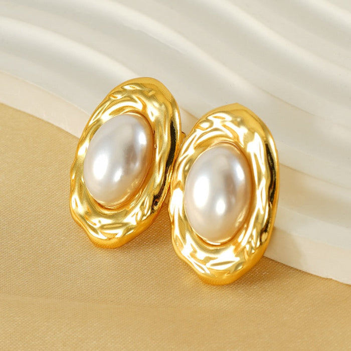 Stainless Steel 18K Goldplated Oorbellen Dames - Classic Pearl